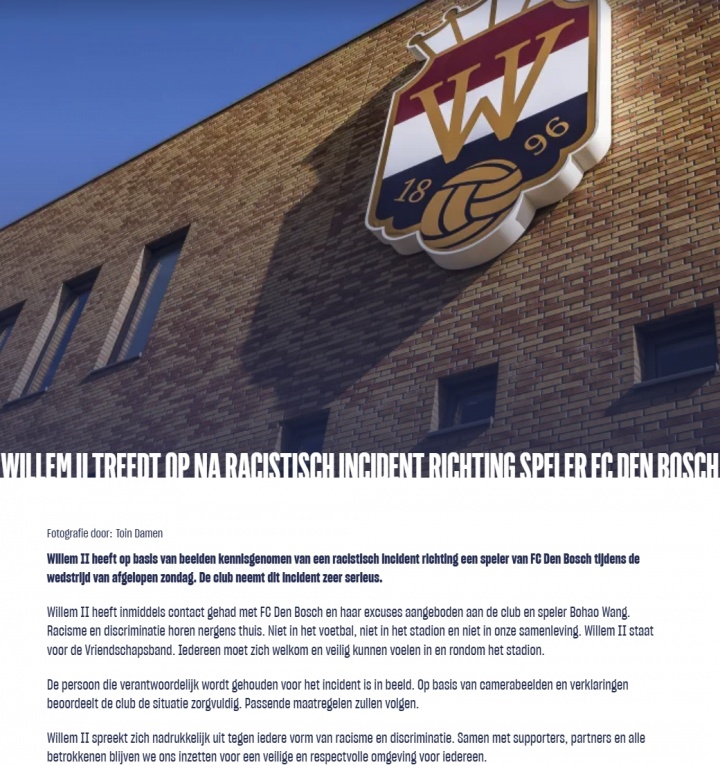 威廉二世已根据视频画面,了解到在上周日的比赛中,发生了一起针对邓伯什足球俱乐部球员的种族主义事件。俱乐部对此事件高度重视。